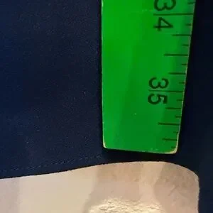 Measurements in pics. One pic shows the zipper unzipped. Hard to see because it blends seamlessly with the navy color.