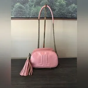 Lanvin crossbody bag in pink. Features a stylish tassel and chain strap. Perfect for any occasion. Good vintage condition