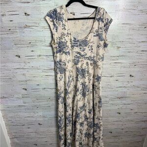 Ralph Lauren Chaps Floral Dress maxi cream size large blue