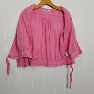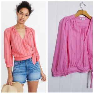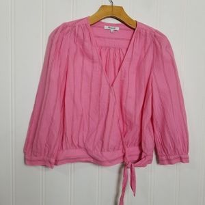 Madewell Cecilia Wrap Top Pink Stripe Tie Waist 3/4 Sleeve Blouse Women's Size S