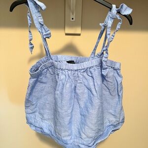 Chic light blue set with sleeveless top and shorts. Ideal for relaxed days. Wrinkles from being in a drawer for awhile. Like new!
