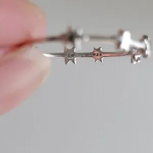 A piece from Laufey and Catbird's limited edition collab (currently sold out on Catbird's website), the silver Nocturne Star ring is adorned with tiny stars set asymmetrically along the band.