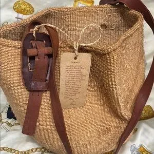 Discover the elegance of this handcrafted tan woven bag, perfect for any occasion. Its unique design and earthy tone make it a versatile accessory. KIKAPU, a Swahili word which means vary all. This item is handcrafted in Kenya. Please review all images. This item is new but had some color marks on the inside, only.