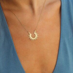 Shine as bright as the sun in this water-friendly necklace. Even on the cloudiest of days this sunrise necklace will bring the warmth. Radiant, just like you, this gold-plated necklace inspires sunny days ahead.