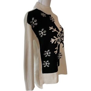 Talbots Black and Cream Snowflake Turtleneck Sweater. Size MP