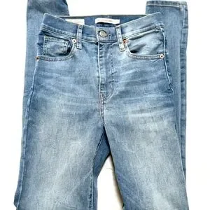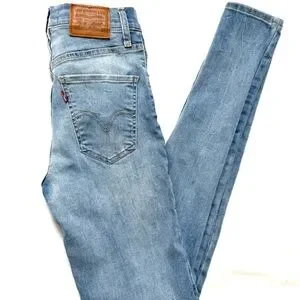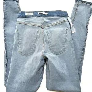 Gently used. Light blue skinny jeans. High waist. Five pockets. Button fastener. Zipper fly. Made from cotton/polyester/elastane. US shipping only. All sales final.