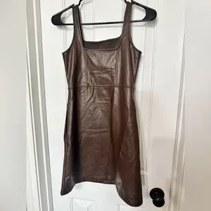 Stylish brown mini dress with a sleek design. Perfect for casual outings.