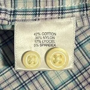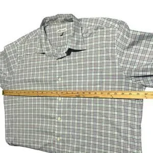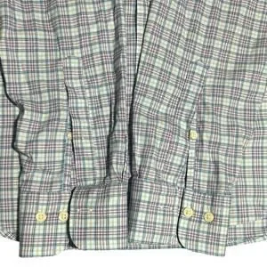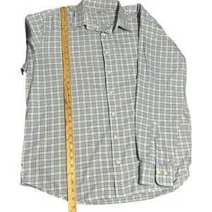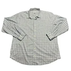 The Peter Millar Cotton Stripe Button Up Dress Shirt in size Large features a collared neckline, button closure, and long sleeves. Made from a blend of spandex, nylon, lyocell, cotton, and cotton blend, this shirt is lightweight, breathable, and easy to care for. It is suitable for various occasions including travel, weddings, parties, casual outings, formal events, and business settings. With a chest pocket accent and a spread collar style, this classic fit shirt is perfect for a stylish and versatile look.