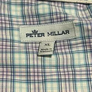 PETER MILLAR Cotton Stripe Button Up Dress Shirt Large Long Sleeve Chest Pocket