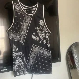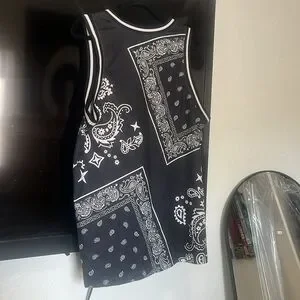 Chic tank with a black and white paisley design. Ideal for everyday style.