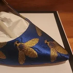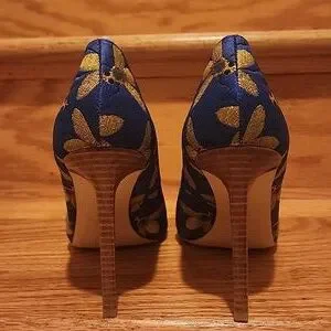 Colors; Blue with Gold Bee Pumps