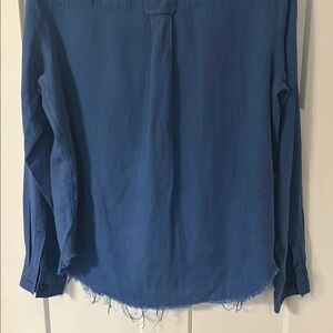 Rails Blue Button-Up Blouse with Patch Accents