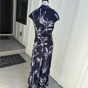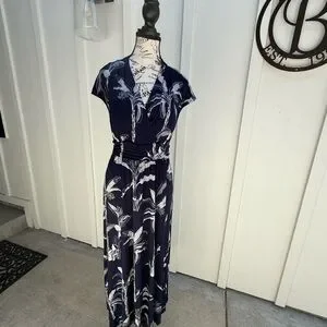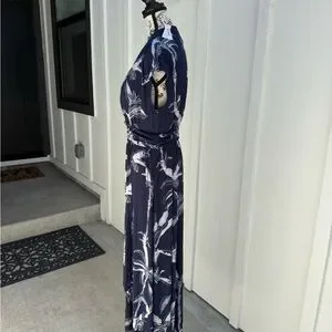 Soma Serenity Maxi Dress Navy Floral Print L Built-in Bra Cool Touch Pockets