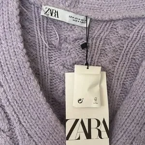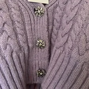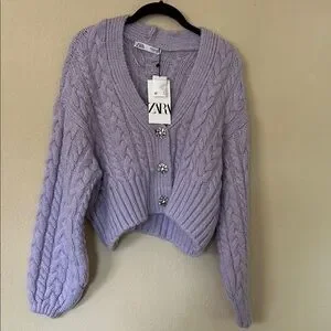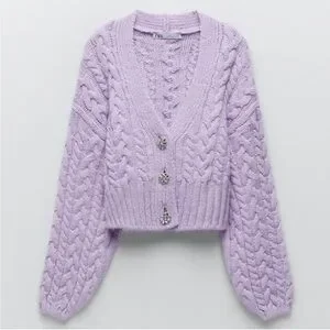 NWT Zara Purple Rhinestone Button Cable Knit Cardigan Sweater Medium
