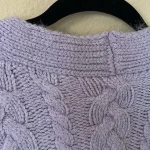 Zara Chunky Cable Knit Jewel Button Cardigan Sweater in Lilac Purple