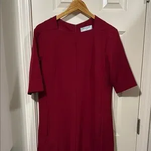 Elegant red midi dress with half sleeves. Ideal for any occasion. Extremely flattering style. Comfortable fabric (7% Spandex) allows freedom of movement. Machine washable.