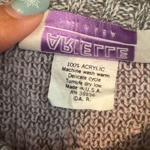 vintage sweater by Arielle is a unique find for any fashion-forward woman. The colorful animal print pattern and fairy kei style make it perfect for a casual occasion. The medium knit style and long sleeves add a touch of preppy charm, while the acrylic material ensures comfort and durability. The sweater is made in the United States and is available in size M-L. Its hipster and Kawaii themes make it a must-have for any fashion-savvy woman. Whether you're going for a vintage look or simply want to add some color to your wardrobe, this pullover is the perfect choice.