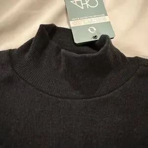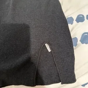 This elegant charcoal grey dress features a sleek design with long sleeves, mock turtleneck and small slit at hem. Its classic style offers a timeless look for work or a night out.
