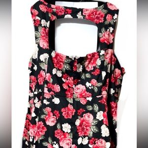 EUC Elegant black dress with vibrant pink floral pattern. Sleeveless design. Perfect for any occasion.