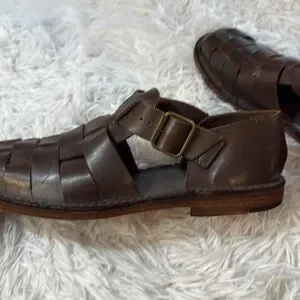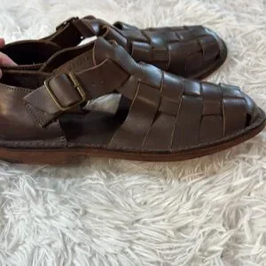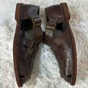 Polo Ralph Lauren Cognac Brown Leather Woven Fisherman Sandals 10