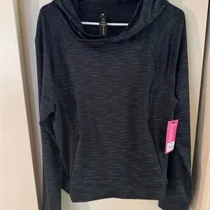 Stylish black hoodie with subtle stripes. Perfect for casual athletic wear.