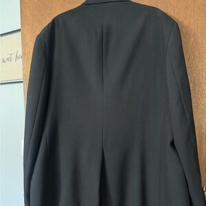 This refined black blazer is highlighted by luxurious gold accents, creating a sophisticated look for any formal occasion. Designed with a classic notched lapel and structured shoulders, it offers a timeless silhouette. Perfect for business or formal events, this sport coat is a versatile wardrobe essential. 32” length and 22 shoulder width