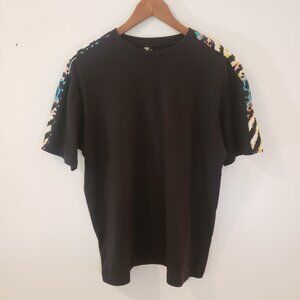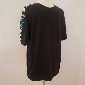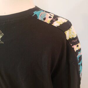 80s style print on sleeve. This may be an African or African Inspired clothing brand.