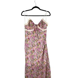 Princess Polly Pink Floral Print Lace Trim Maxi Dress size 10