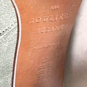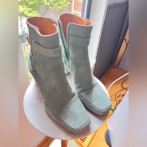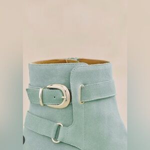 Worn 2x — nearly new! Sea green Brooklyn bottines in split cowhide leather, from Sézane’s Soft Summer collection in 2023. Taille 37 (US size 6.5)