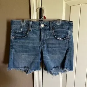 Explore style and comfort with these denim blue and light wash jean shorts. Perfect for any casual outing. They are size 4, American Eagle Super Super Stretch Midi shorts. Both have been worn but in great condition. Message me directly if you only want one pair and not both :)