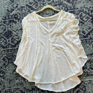 This cream-colored tee from We The Free features a relaxed fit with stylish cut-out details. Its soft, lightweight fabric ensures comfort and versatility, making it a perfect addition to any casual wardrobe. The short sleeves and simple design make it easy to pair with various outfits for a laid-back look.