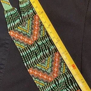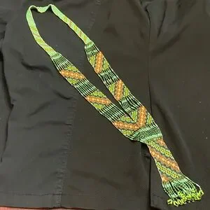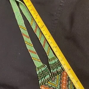 Elevate your style with this handcrafted beaded necklace. Featuring vibrant green and orange hues, this accessory adds a unique touch to any outfit.