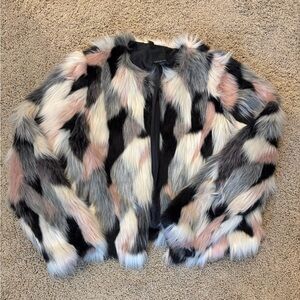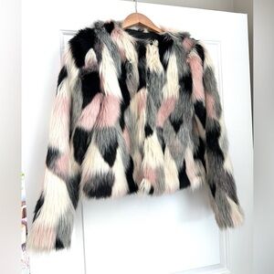 Cynthia Rowley Pink Black White Faux Fur Coat