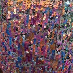 Super cute and sparkly mini dress with spandex for a form fitting look. made by B. Darlin size 11/12. sequins are blue, pink, coral, and silver. new with tags