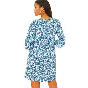 Several stylish touches combine to create Lilly Pulitzer's Krysta Tunic Dress. Its easy fit silhouette features 3/4-length sleeves with ruffled hems, pintucks, and Lilly lace trim around the notch neckline. A bright, bold Lilly print finishes this everyday dress off in style.