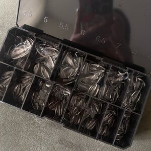 Aprés Nails Natural Almond Extra Short small box. This is the 280 piece box but it is not complete as some were used to make press ons. I was going to start a press on nails shop but decided otherwise