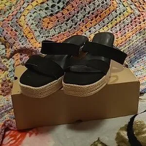 3/$15🚨WAS $49. PIEPIEBUY Black Wedge Espadrille Slip on Sandals