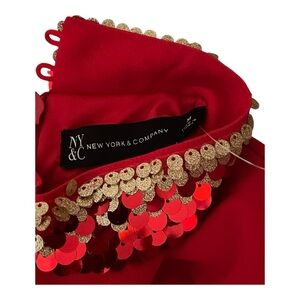 New York & Company Red with red&gold sequins. Halter neck.