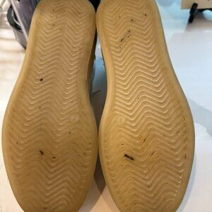 Super cute and comfy silver sneakers with a green star. Leather, soft inside.
