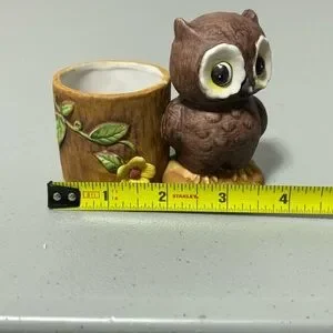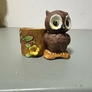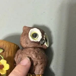 Owl Figurine Tree Stump Flower VTG Made in Korea