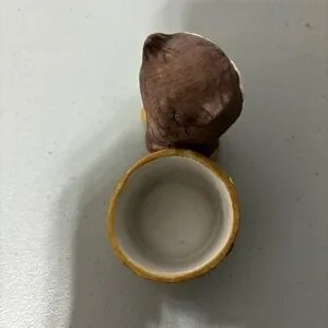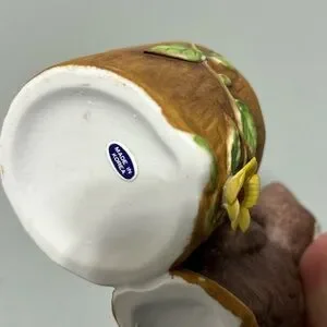It looks like the flower has been glued on (maybe repaired). There is also a line that goes across the front and back of the owl-it looks like possibly a hairline crack, but I can't feel it when running my finger across it-could be just a scratch. See photos.