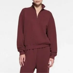 Skims Cotton Fleece Classic Half Zip Pullover Hoodie Oxblood Burgundy