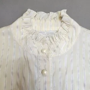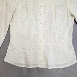 ITALIAN FABRIC Adorable Stripe Peplum Blouse with Pearl Buttons Size M