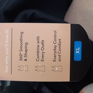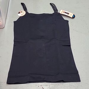 New with tags and packaging, no flaws seen. Lovely black tank top with smoothing and shaping design, great for everyday wear.