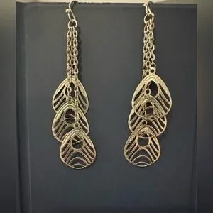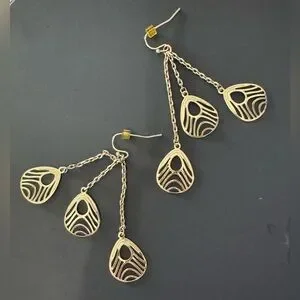 Discover the exquisite craftsmanship of Lia Sophia with these gold dangle earrings, featuring a delicate filigree design that adds a touch of elegance to any ensemble. The earrings showcase multiple teardrop-shaped charms, each intricately cut to create a light and airy feel. Suspended from thin chains, these earrings offer a graceful cascading effect, perfect for those who appreciate vintage-inspired jewelry.