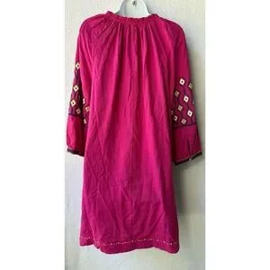 Sundance Saira Cover Up Pink Tassels Long Sleeve Embroidered