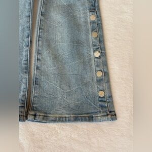 NWT - Blank NYC Hoyt High-Rise Mini Flare with seam snap detail at the flare. Constructed of organic cotton and perfect wash - not too light and not too dark. Stiletto friendly and a very figure flattering cut. Low stretch. Perfect for casual workdays or a night out. Approximate flat lay measurements: