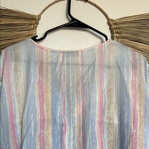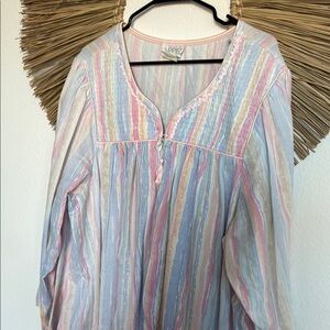 Experience ultimate comfort with this pajama set featuring a relaxed fit and a soft, breathable fabric. The vertical stripes in pink and blue add a touch of elegance, while the V-neck design ensures a cozy night's sleep. Perfect for lounging or bedtime, this set combines style and practicality.