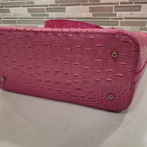 This bag is perfect for vacation, summertime, or anytime of the year really, especially if you prefer a larger sized bag. I purchased this bag new. I am the only owner. I carried it for about a month, but ended up going with a different option. It still has the new leather smell. The gold hardware is beautiful (no scratches) and looks like "bag jewelry." No scuffs or blemishes on the outside. As for the inside, there are no pen marks, lipstick marks, or any other 'mystery' stains. There are no odors other than the leather smell. The dust bag will be included. This gorgeous bag comes from my clean, smoke-free, pet-free, and child-free home. In excellent, like new condition. Please review all pictures as this is the actual bag you will be getting. Measurements are listed in the pictures as well. This is a very gorgeous bag that carries very nicely and is no longer made by Brahmin. Here is your chance to own it, don't miss out!!๐๐๐