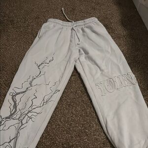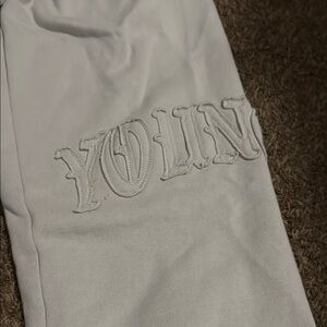 Experience ultimate comfort with YoungLA's sweatpants, designed in a stylish blend of white and gray. These joggers feature a relaxed fit and are crafted from a soft, casual fabric, making them perfect for everyday wear. The elastic waistband ensures a snug and adjustable fit, ideal for lounging or casual outings.